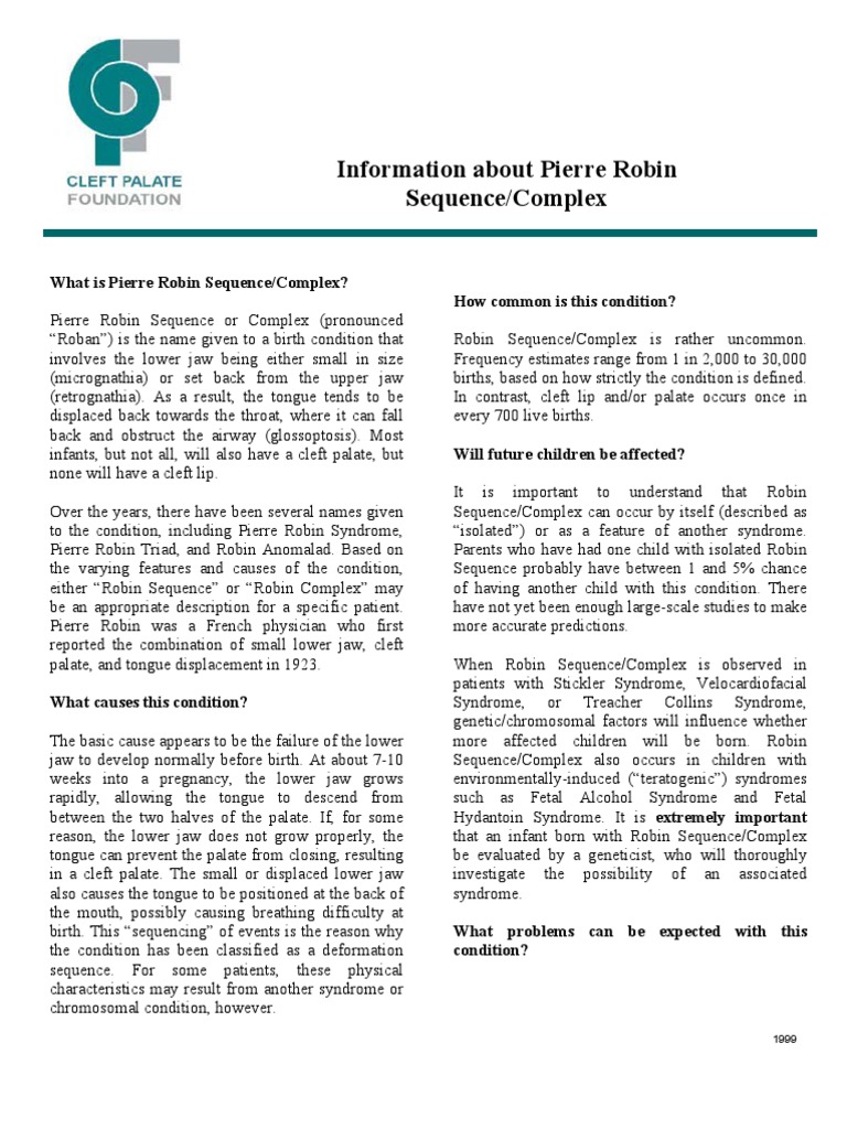 CFC syndrome is usually caused by a mutation in the BRAF gene but can also be due to a mutation in the MAP2K1 MAP2K2 or KRAS g ene. Characteristic Features of Pierre Robin Syndrome The initial abnormality from which all the other features follow hence the term sequence is a very under-developed lower jaw. Facial features include widely spaced eyes light-colored eyes low-set ears a short neck and a small lower jaw.