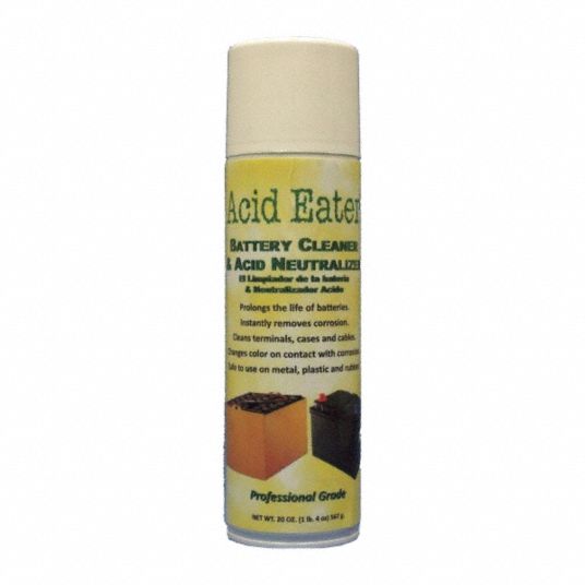 Battery acid neutralizer spray. Formula cuts thru corrosion for removal with a no-spark brush brush not included May be washed off after use. Number of Pads Included 10. Neutralizes Chemical Type Acids.
