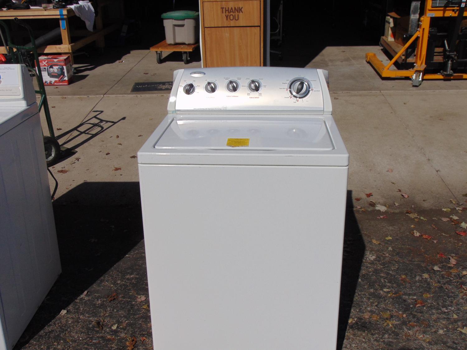 Whirlpool Auto Load Sensing with Triple Spray Technology. The Load Sensing wash system with Triple Spray Technology uses 3 spray nozzles to fill the wash basket according to load size for faster filling and greater efficiency. Whirlpool Washer Dryer Set Pair - USED. Whirlpool WTW58ESVW Super Capacity Plus Top Load Washer Uses 49 less water and 65 less energy earning an ENERGY STAR qualification. Spray Rinse Select cycles default to a spray rinse. OnOff Extra Rinse option. Tacoma Washington Refrigerators ovens etc. Auto load sensing with Triple Spray Technology TST Care Control temperature management. Quiet Wash noise reduction system.