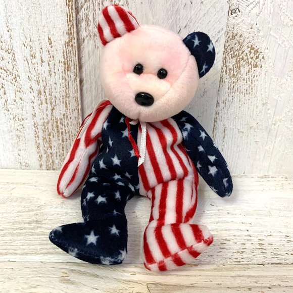 This is a rare blue faced Spangle Beanie Baby. Spangle Beanie Baby RARE 1999 Pink Head. I bought these as a kid myself and got them from local stores like jcpenney younkers and toy r us at the time they where in my storage unit in a storage container this whole time and now it is time for them to go to someone who will enjoy them. Add to Favorites Ty McDonalds Teenie Beanie Spangle the Bear in Package 2000 SchoppCollectibles 5 out of 5 stars 35 Star Seller 2495. As you view these beanie baby values youll notice drastic differences between the plush toys listing and sale prices. 5000 Buy It Now or Best Offer 18d 4h FREE Shipping eBay Money Back Guarantee. TY Beanie Baby-Rare Spangle The Bear McDonalds 1999 New In Box. SPANGLE White FACE BEAR TY BEANIE BABY MWMT New In Box Sealed Super Rare. RARE Ty beanie baby Pink Face Spangle the bear Errors 1999 near mint Retire.